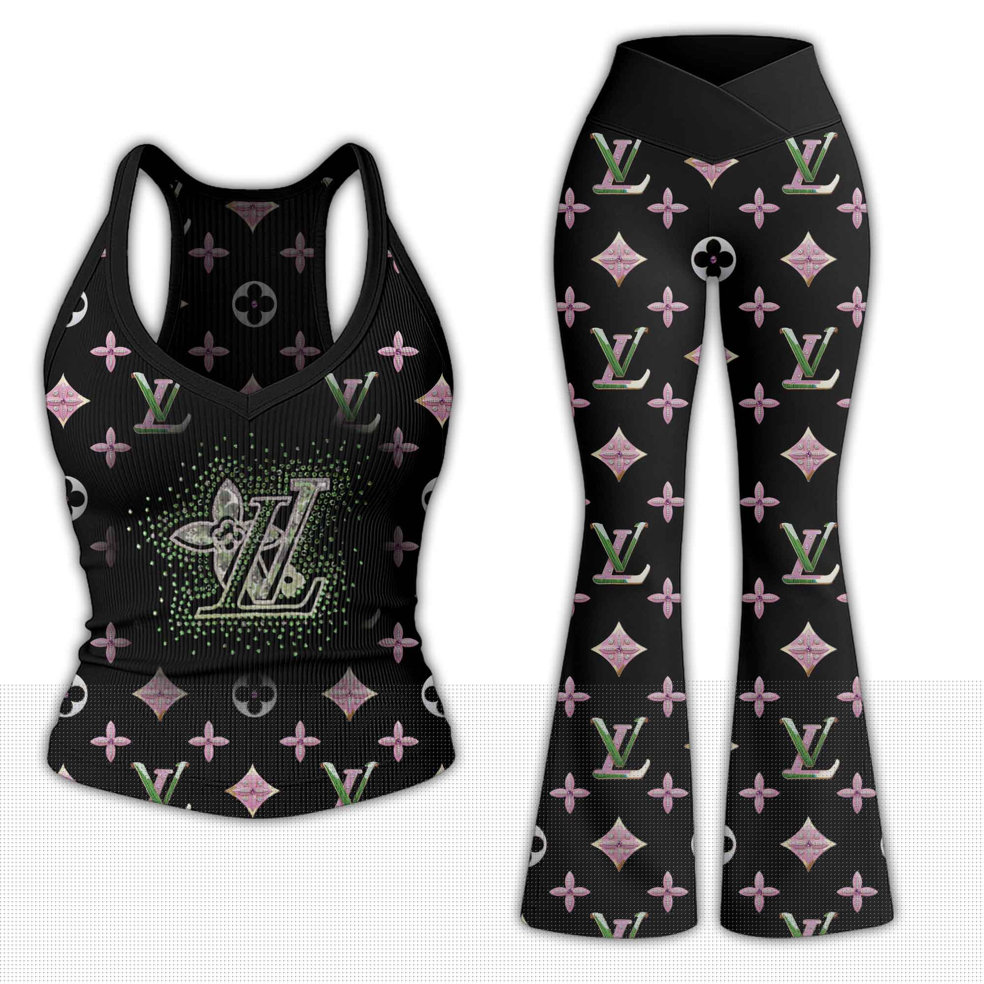LV | Premium Bodycon Ribbed Tanktop & Flare Leggings Combo CB294-LV-HYT-TT-18072505