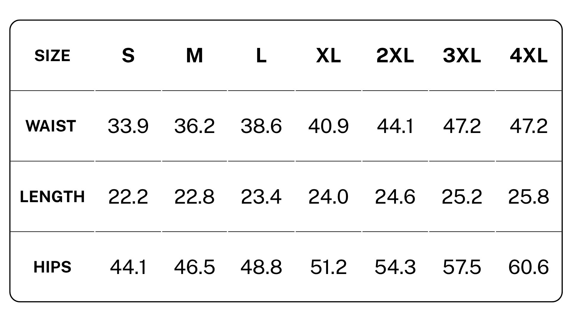 Cargo Shorts Size Chart (Inches):